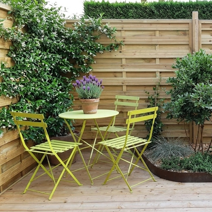 - Manger en famille à trois… ou plus, avec un espace modulable qui n’empiète pas trop sur le jardin